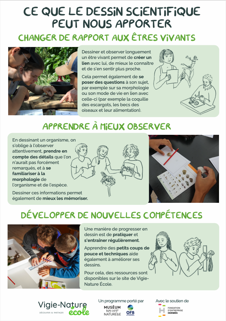 Les ateliers de dessin scientifique proposés par Vigie-Nature École ont plusieurs objectifs :